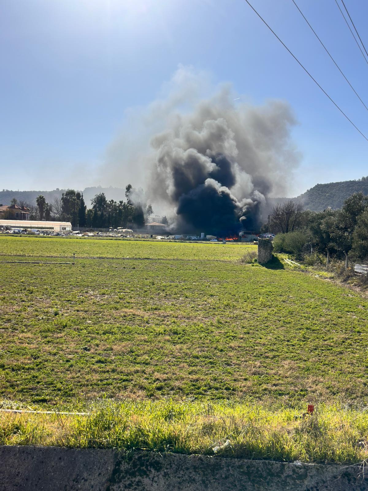 Beçin Mahallesi’nde karayolu mevkiinde yer alan bir hurdalık alanda yangın çıktı.