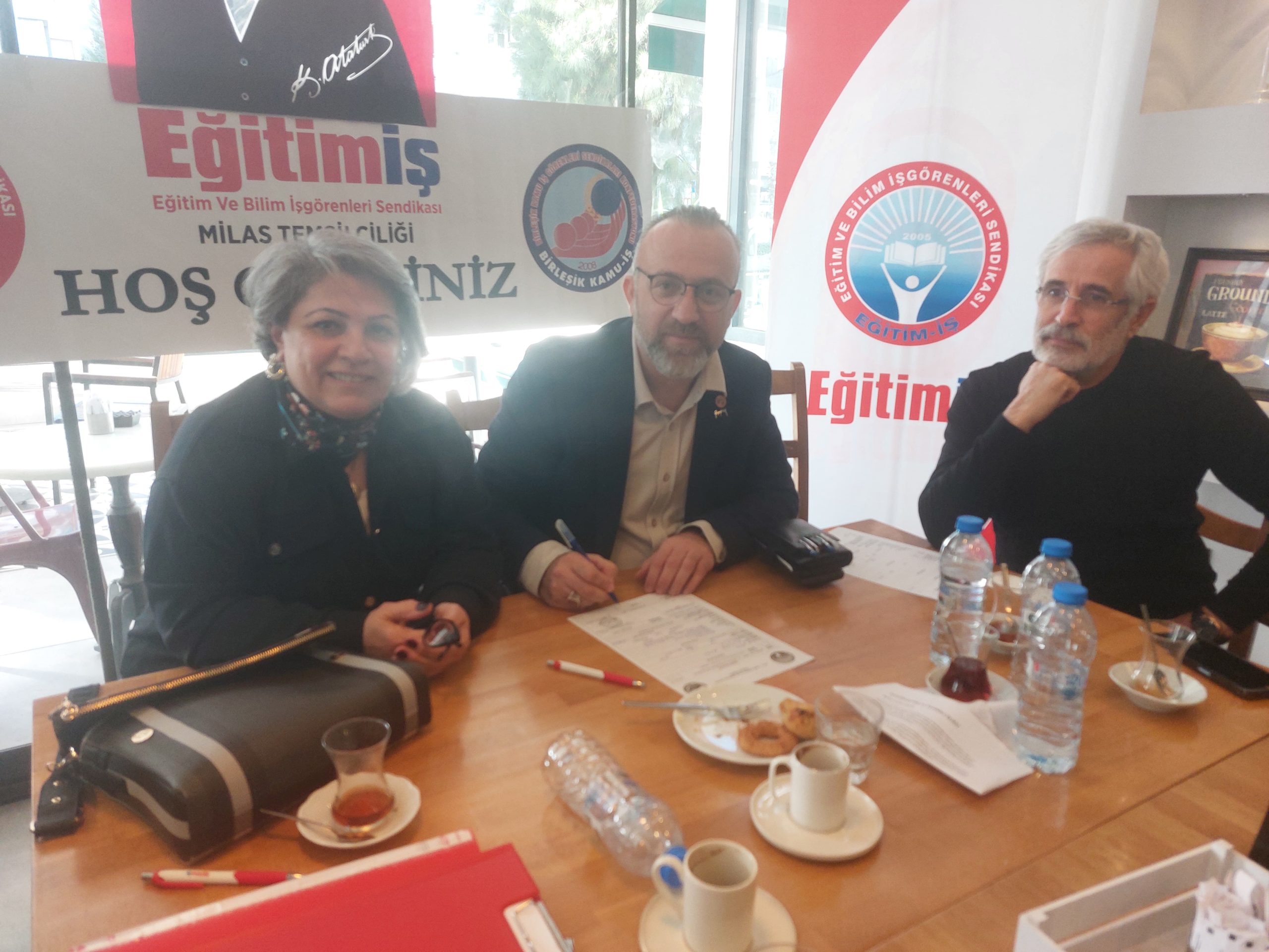Toplantıya; Birleşik Kamu-İş Konfederasyonu Muğla İl Başkanı ve Eğitim-İş Muğla Şube Mali Sekreteri Özkan Kaya, Eğitim-İş Muğla Şube Başkanı Serdar Sargın, Eğitim-İş Muğla Şube Eğitim Sekreteri Ahmet Çakanel, Eğitim-İş Muğla Şube Örgütlenme Sekreteri Elif Çağlar, Eğitim-İş Muğla Şube Özlük, Hukuk ve TİS Sekreteri Güven Özgül, Eğitim-İş Milas Temsilcisi Ayşe Yılmaz ve Yönetim Kurulu üyeleri, Sendika üyeleri ve öğretmenler katıldı.
