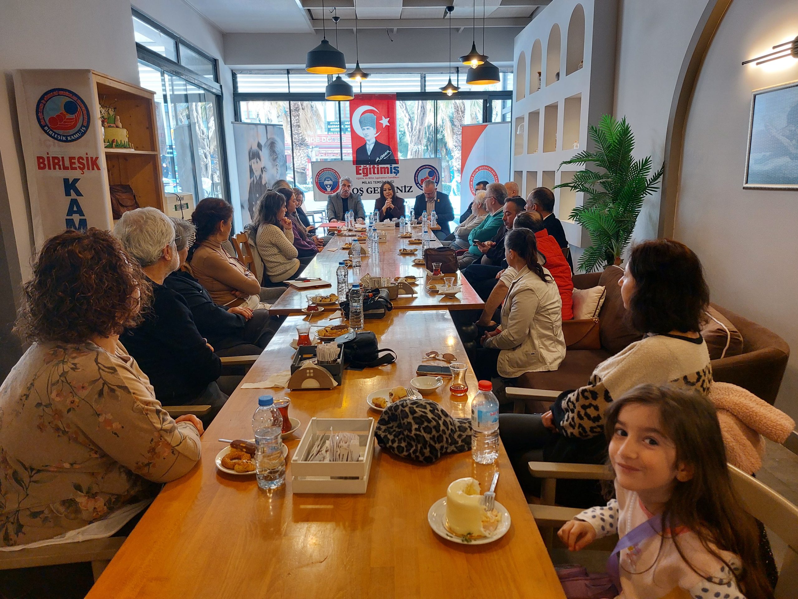 Toplantının, eğitim emekçilerinin karşı karşıya kaldığı hukuki sorunları değerlendirmek amacıyla düzenlendiğini belirten Eğitim İş Milas İlçe Temsilcisi Ayşe Yılmaz, “Son dönemde eğitim emekçilerinin karşı karşıya bırakıldığı hukuki sorunlar, bireysel olmaktan çıkmış; sistematik ve yaygın bir nitelik kazandı. Özellikle norm fazlası öğretmenlerin resen atamaları, soruşturma süreçleri sonucunda yapılan görevlendirmeler, disiplin cezaları ve sendikal faaliyetler nedeniyle açılan davalar, öğretmenlerin mesleki güvencesini ciddi biçimde zedelemekte. Eğitim-İş Milas Temsilciliği olarak gerçekleştirdiğimiz “Avukatımızla Buluşuyoruz” başlıklı bilgilendirme toplantısında, öğretmenlerimizin yaşadığı bu süreci hukuki boyutlarıyla ele aldık. Amacımız; yaşanan hak kayıplarını görünür kılmak, öğretmenlerimizi doğru hukuki bilgiyle buluşturmak ve “yalnız değilsiniz” duygusunu güçlendirmektir” dedi.