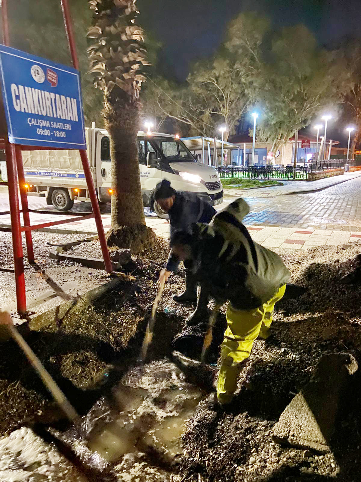 Ekipler, yağışlar nedeniyle ev ve iş yerlerinde meydana gelen su baskınlarına kısa sürede müdahale ederken; dere taşkınlarının yol açabileceği riskleri azaltmak ve yollarda oluşan hasarları gidererek ulaşımın aksamamasını sağlamak için yoğun mesai harcadı. Tespit edilen noktalar ve vatandaşlardan gelen ihbarları değerlendiren Milas Belediyesi ekipleri vatandaş ve çevre güvenliğini sağlamak için gece gündüz sahada mücadele etti.