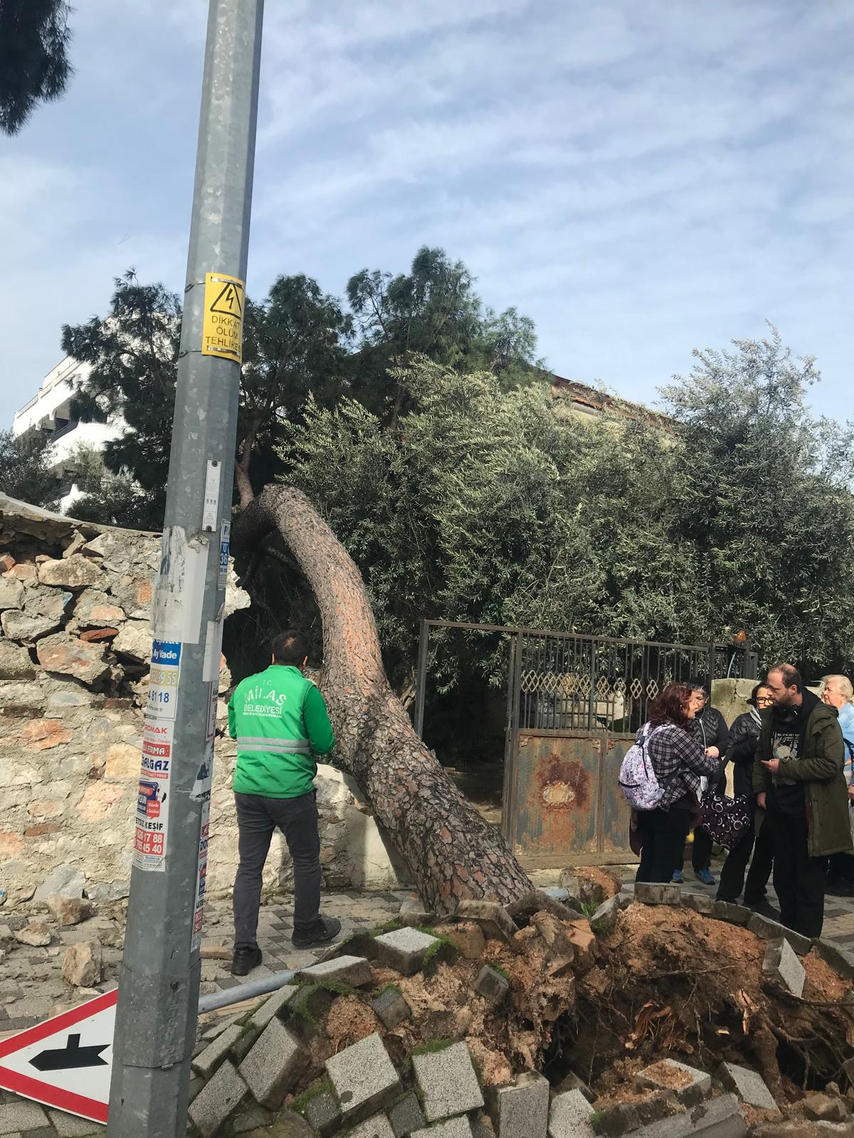 İsmetpaşa Mahallesi Turgut Özal Caddesi’nde bulunan çam ağacı şiddetli rüzgara dayanamayarak yıkıldı.