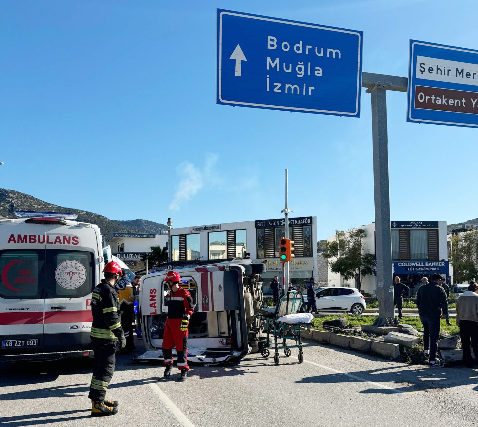 Edinilen bilgiye göre, sıkışmalı trafik kazası ihbarı üzerine olay yerine ekipler sevk edildi. Bölgeye ulaşan ekipler, 48 NB 680 plakalı, Bodrum Devlet Hastanesi’ne bağlı hasta nakli gerçekleştiren ambulansın tek taraflı kaza yaparak yan yattığını tespit etti.