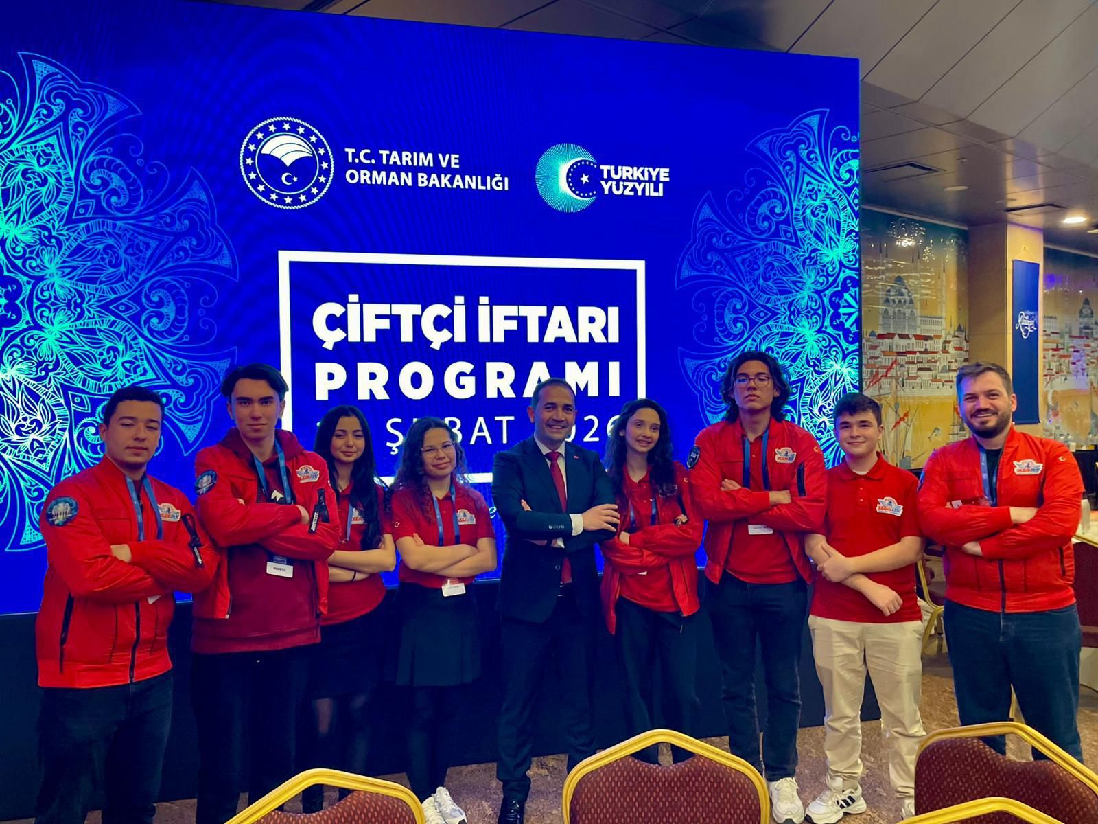 Program kapsamında öğrenciler, tarım alanında üst düzey yöneticilerin bulunduğu masalara dağıtılarak farklı kurum ve birimlerden katılımcılarla tanışma, fikir alışverişi ve bağ kurma fırsatı buldu; tarım teknolojilerinin sahadaki ihtiyaçları üzerine sohbetler gerçekleştirdi. Etkinliğe Cumhurbaşkanımız Sayın Recep Tayyip Erdoğan da katılırken, öğrencilerimiz Tarım ve Orman Bakanı İbrahim Yumaklı ile kısa bir sohbet etme imkânı yakaladı.