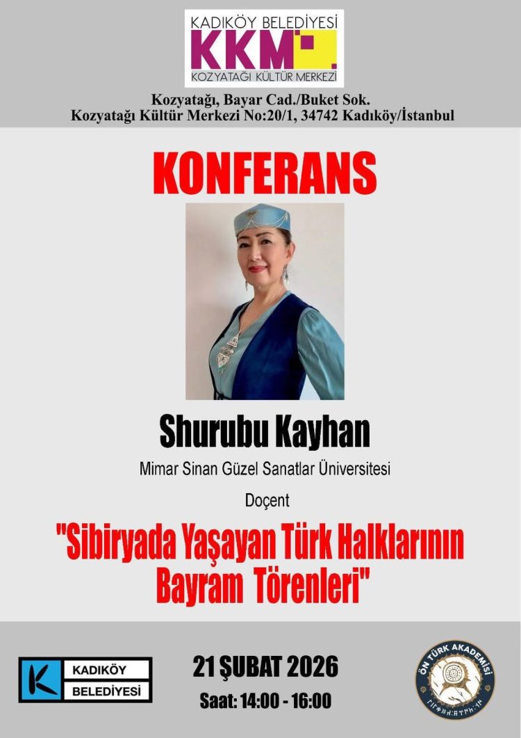 Ön Türk Akademisi 21 Şubat Cumartesi günü KOZYATAĞI KÜLTÜR MERKEZİ’nde (Bayar Cad. Buket Sok. NO 20/1 Kadıköy – İSTANBUL) Sibirya Türklerindeki bayram geleneklerini ele alan bir konferans düzenliyor.
