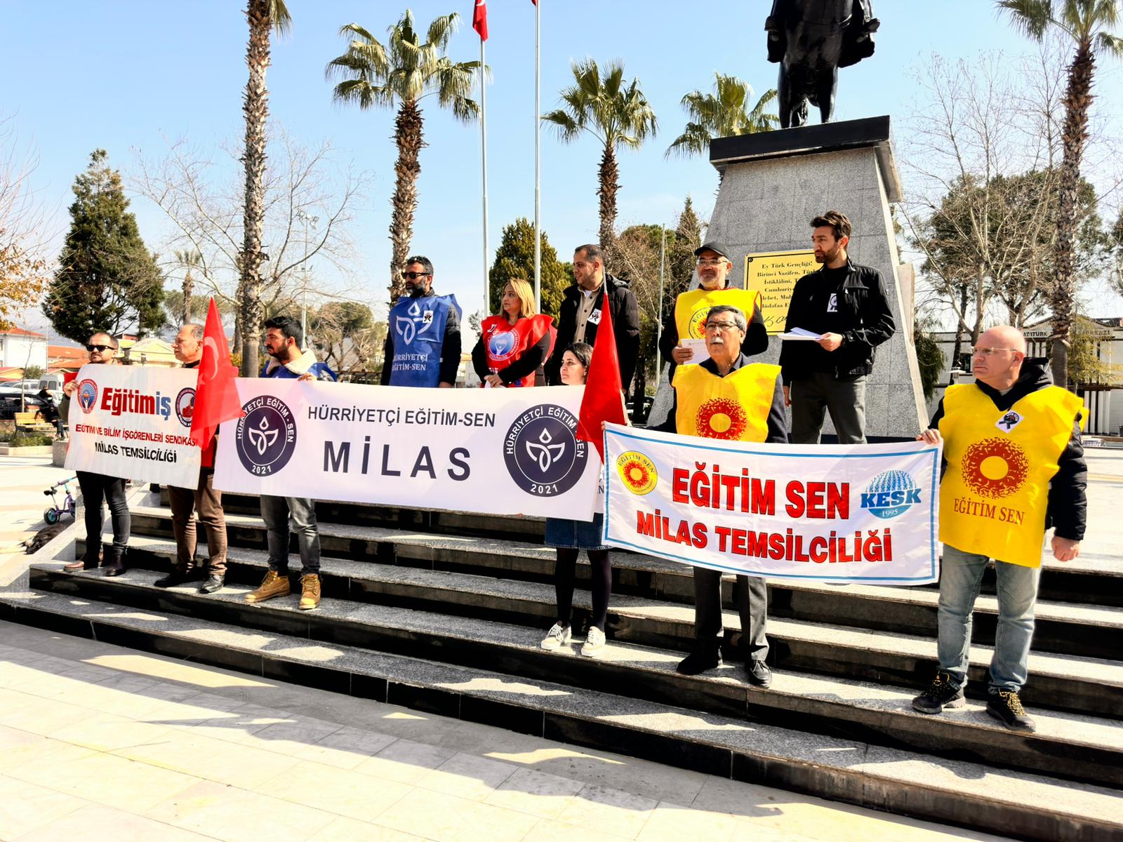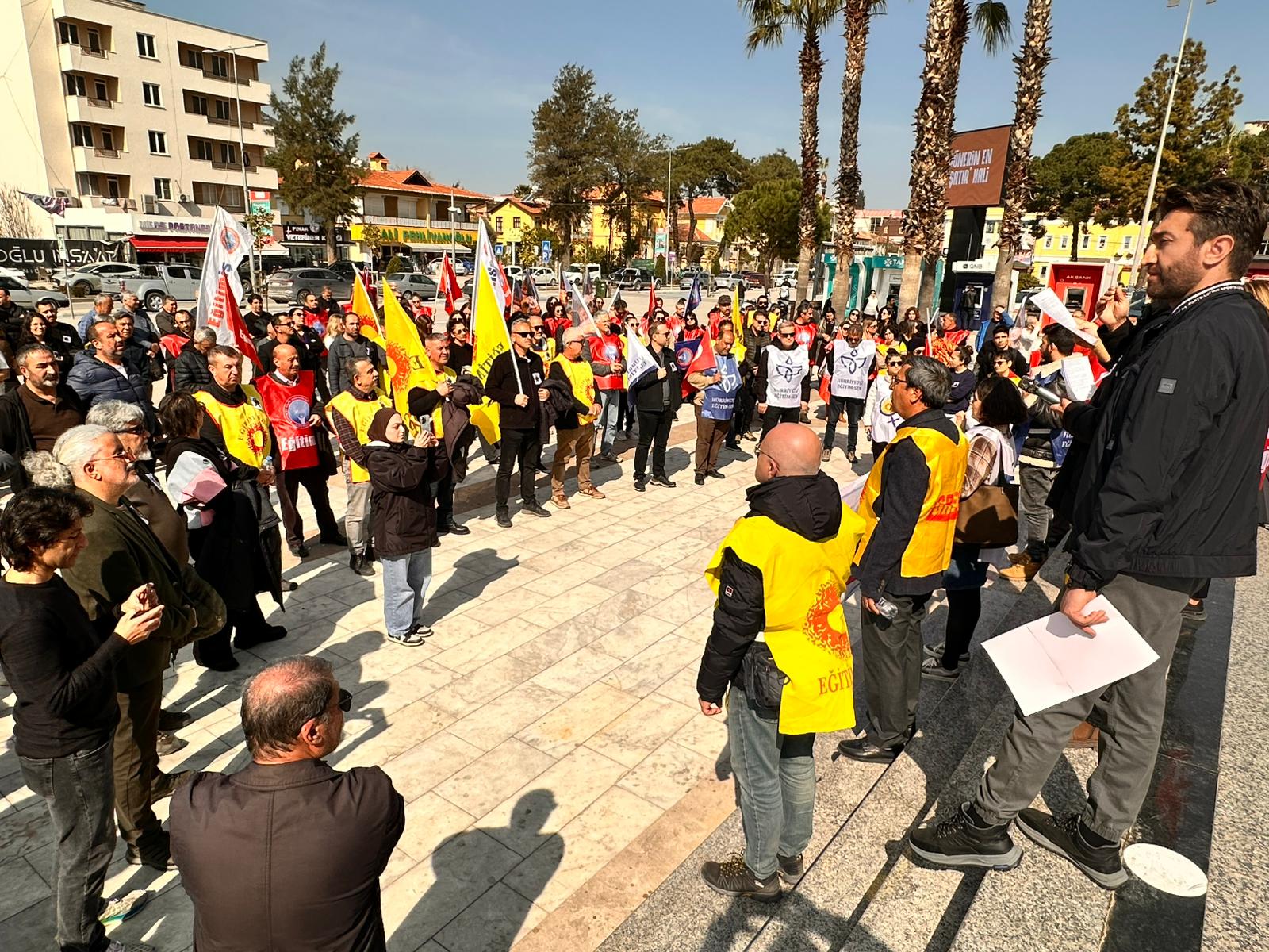 Yaşanılan olayı protesto etmek ve eğitim emekçilerine yönelik artan şiddete dikkat çekmek amacıyla Milas’ta da Eğitim İş, Eğitim Sen, Hürriyetçi Eğitim Sen ve TEÇ Sen üyelerinin katılımıyla basın açıklaması yapıldı.