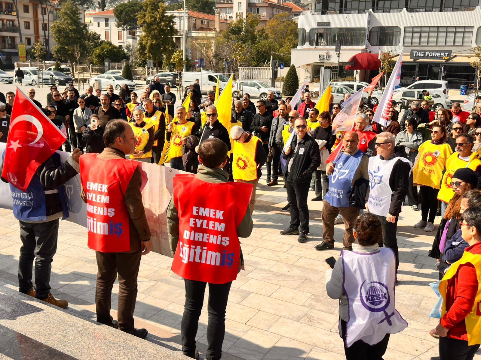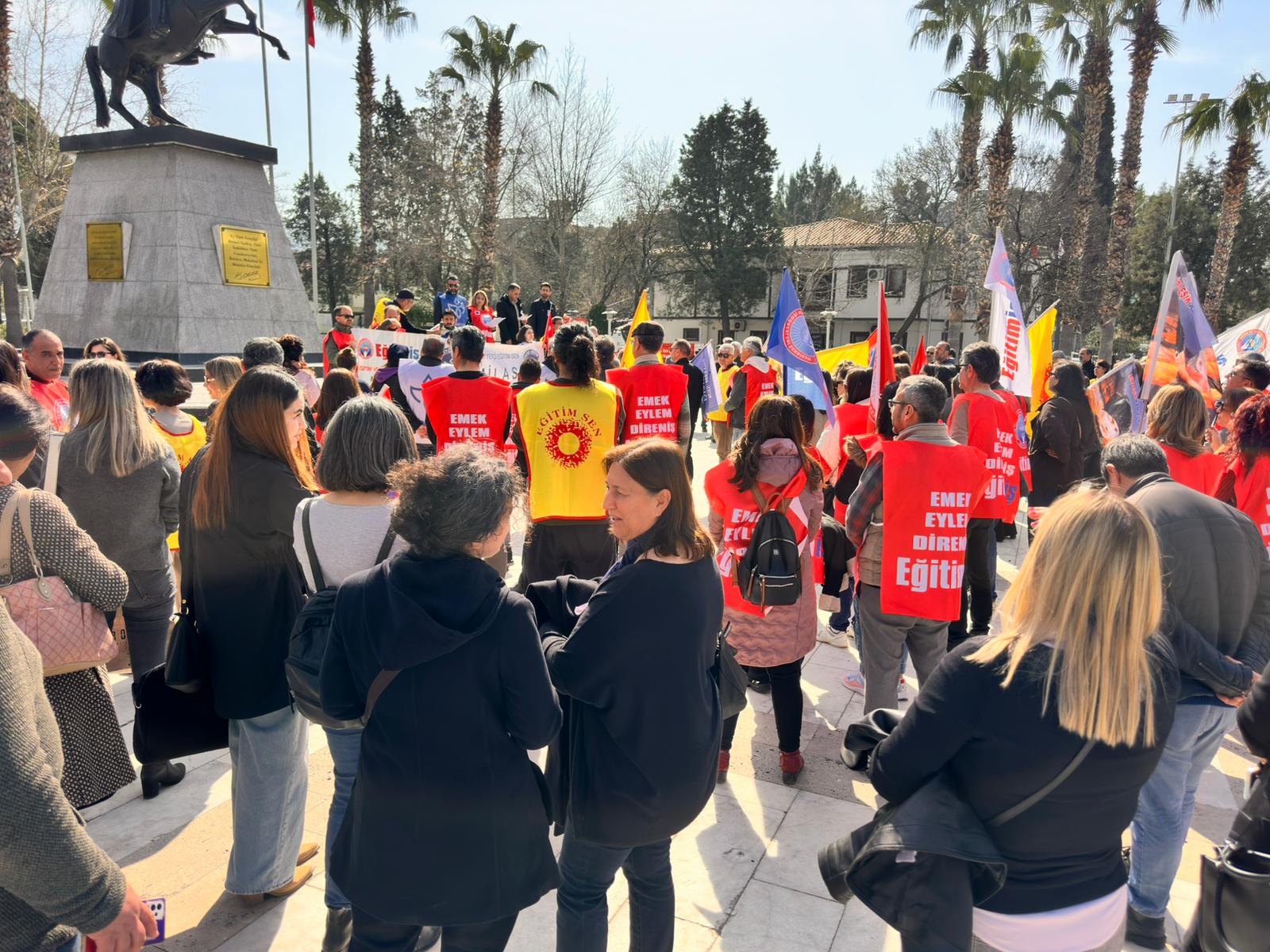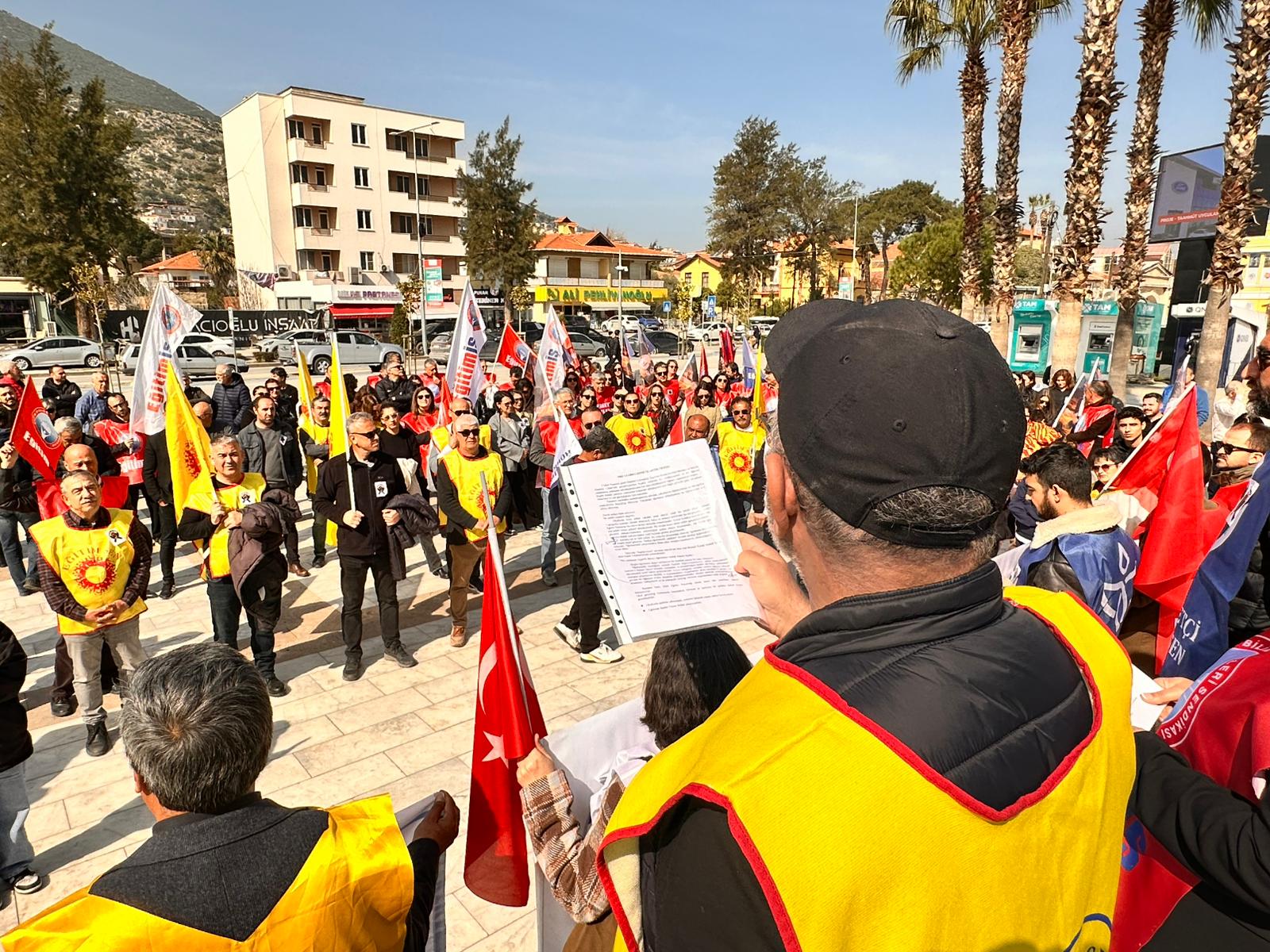 2 Mart Pazartesi günü İstanbul Çekmeköy Taşdelen Borsa İstanbul Mesleki ve Teknik Anadolu Lisesi’nde gerçekleştirilen bıçaklı saldırıda iki meslektaşımız ve bir öğrenci yaralanmış, yaralanan arkadaşlarımızdan biri tüm müdahalelere rağmen yaşamını yitirmiştir. Bugün burada yalnızca aramızdan koparılan arkadaşımız için değil, yıllardır göz ardı edilen itibarımız ve can güvenliğimiz için toplandık. Yaşamını kaybeden meslektaşımızın ailesine, yakınlarına, öğrencilerine ve tüm eğitim emekçilerine başsağlığı diliyoruz. Yaralanan öğretmen arkadaşımıza ve öğrencimize acil şifalar diliyoruz.