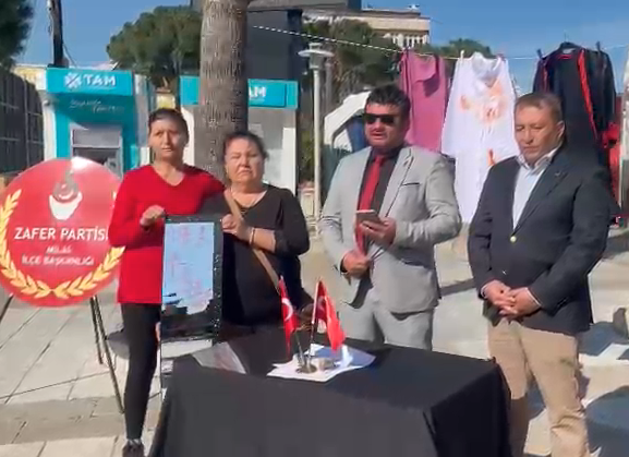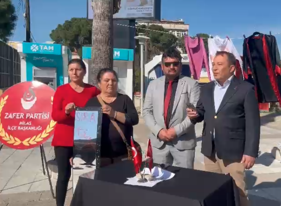 Buradan, Milas Meydanı'ndan, Zafer Partisi Milas İlçe Başkanlığı olarak söz veriyoruz: Atatürk'ün mirasına sahip çıkacak; hem sokaklarında gece-gündüz demeden güvenle yürünen hem de iş hayatında kadınların özgürce var olduğu o adil Türkiye'yi yeniden inşa edeceğiz! Cinayetlerin sıradanlaşmasına, katillerin kravat taktı diye indirim almasına asla izin vermeyeceğiz! Hiçbir kadının hayalinin yarım kalmadığı, ayakkabılarının meydanlarda sahipsiz bırakılmadığı, adil, huzurlu ve güvenli bir Türkiye için mücadelemiz zaferle taçlanana dek susmayacağız! Yarınlar, korkusuz ve hür Türk kadınının omuzlarında yükselecektir."