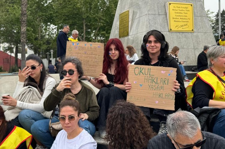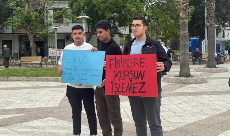 Öğrencilerin de destek verdiği eylemde ellerinde dövizler taşıyan öğrenciler, “Okul yuvadır. Bir çocuğun evinden sonraki en güvenli sığınağıdır, öyle olmalıdır”, “Fikirlere kurşun işlemez”, “Okullar ikinci evimiz, evimizde olmak istiyoruz” ve “Okul hakkı yaşam hakkıdır” ifadeleriyle güvenli eğitim ortamı taleplerini dile getirdi.