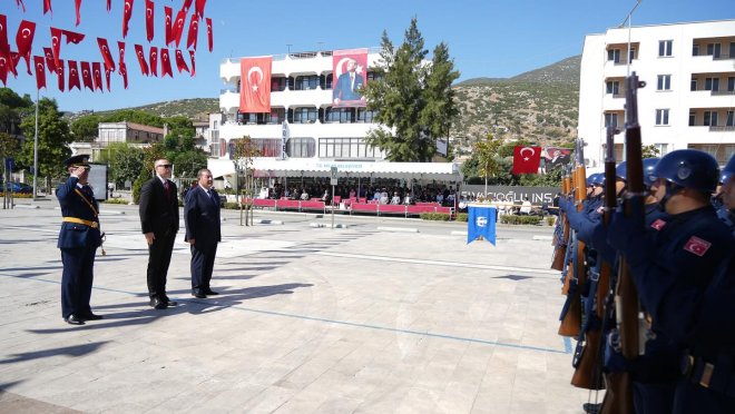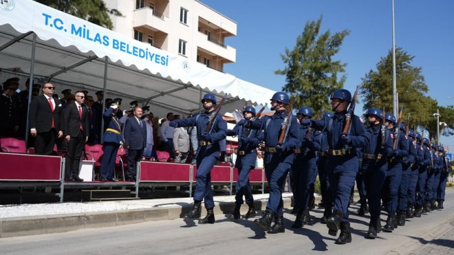 Kutlamalar, Atapark Meydanı’nda saat 09.30’da Milas Kaymakamı Mustafa Ünver Böke, Garnizon Komutanı Albay Osman Macar ve Milas Belediye Başkanı Fevzi Topuz’un Atatürk Anıtı’na çelenk sunumuyla başladı. Ardından saygı duruşu ve İstiklal Marşı okundu.