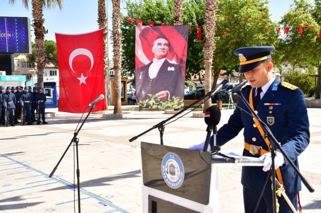 Günün anlam ve önemini belirten konuşma, Milas Garnizon Komutanlığı adına Hv. İs. Üsteğmen Muammer Gültekin tarafından yapıldı.