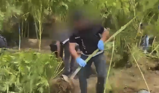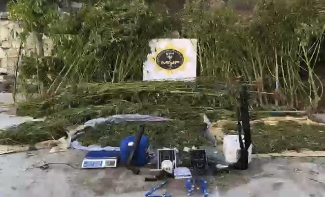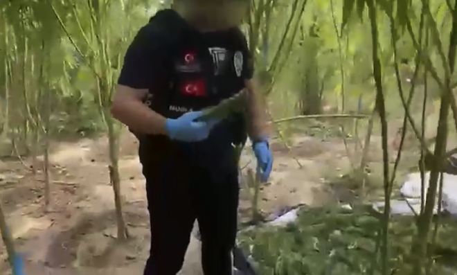 Muğla Valiliği’nden verilen bilgilere göre; şüpheli şahısların ikametinde ve bahçesinde yapılan aramalarda; 695 adet kenevir bitkisi, 3 parça halinde toplam 20 kilo 600 gram esrar, 5 gram kenevir tohumu, 2 adet çalışır vaziyette hassas terazi, 1 adet ruhsatsız pompalı tüfek, 1 adet ruhsatsız av tüfeği, 1 adet kuru sıkı tabanca, 15 adet kurusıkı tabanca fişeği, 37 adet av tüfeği fişeği, 2 adet alarmlı IP güvenlik kamerası, 2 bidon halinde toplam 10 litre sıvı gübre, 3 adet kamuflaj örtü ve 4 adet güvenlik sensörü ele geçirildi.