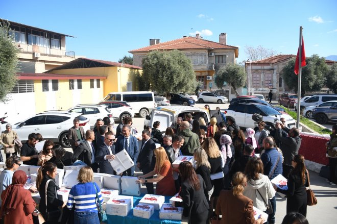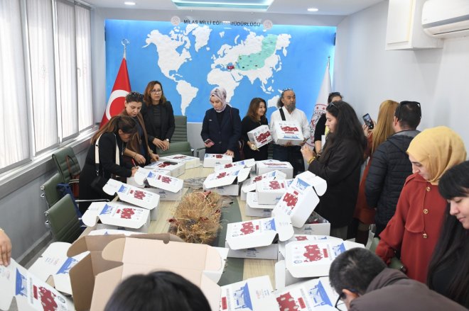 Milas’a özgü yerel ürünlerin yer aldığı özel paketler, 81 ilde belirlenen öğretmenlere ulaştırılmak üzere titizlikle hazırlandı. Hazırlık sürecinin tamamlanmasının ardından, öğretmenlerin katılımıyla paketler yola çıkarıldı.