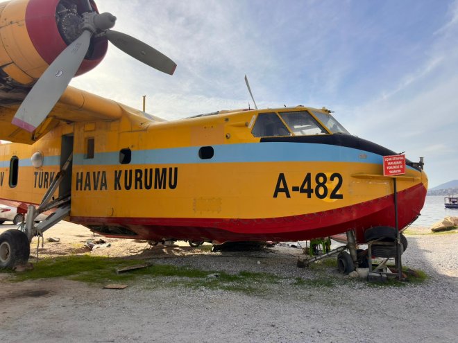 Milas’a bağlı Kapıkırı Mahallesi sahilinde bulunan THK’ya ait yangın söndürme uçağı, aradan geçen 18 aya rağmen hâlâ kaldırılmayı bekliyor. Uçak, 14 Haziran 2024 tarihinde Aydın’ın Didim ilçesinde çıkan makilik alan yangınına müdahale etmek üzere Bafa Gölü’nden su aldığı sırada kırıma uğrayarak göle batmıştı.