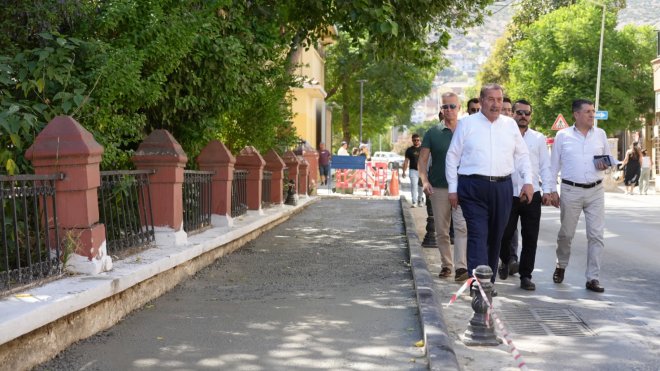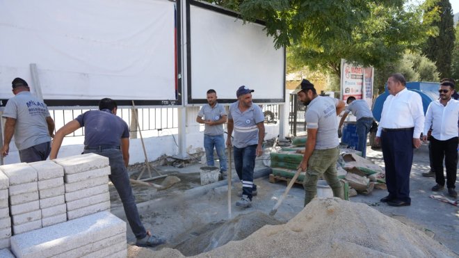 Milas Belediyesi 2025 yılı Eylül Ayı Olağan Meclis Toplantısı’nın tamamlanmasının ardından beraberindeki meclis üyeleri ile birlikte İnönü Caddesi’nde incelemelerde bulunan Başkan Topuz, çalışanlara kolaylıklar diledi. İnönü Caddesi’nde devam eden kaldırım yenileme faaliyetlerini yerinde takip eden Başkan Topuz, trafik yoğunluğunun oldukça fazla olduğu alanda okulların açılması öncesinde çalışmaların tamamlanmasının hedeflendiğini belirtti.
