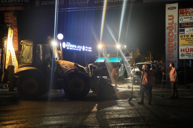 Muğla Büyükşehir Belediyesi, Menteşe ilçesinde şehir içi yollarda 17 milyon 500 bin liralık yatırımla başlattığı asfalt yenileme çalışmalarına gece gündüz demeden devam ediyor.