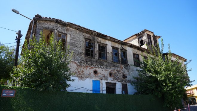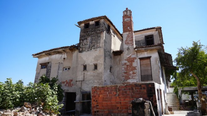Yıllara meydan okuyan, bir kısmı hasar görse de hala ihtişamını koruyan konak için restorasyon çalışmaları öncesinde çevre güvenliği ve çalışma alanı oluşturmak için çevre temizlik çalışmaları yapılıyor.