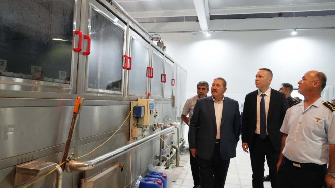 Milas Kaymakamı Mustafa Ünver Böke, Garnizon Komutanı Albay Osman Macar, İlçe Emniyet Müdürü Oktay Boydak ve İlçe Jandarma Komutanı Yarbay Gökhan Kurgan’a tesisi gezdiren Milas Belediye Başkanı Fevzi Topuz, Labranda suyun üretim çalışmalarının hız kesmeden devam ettiğini belirtti.