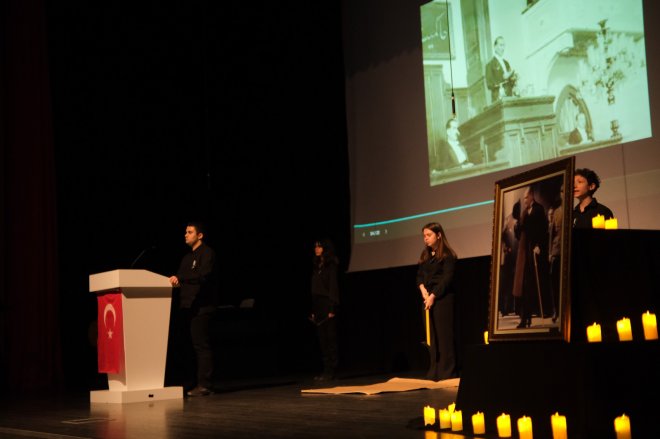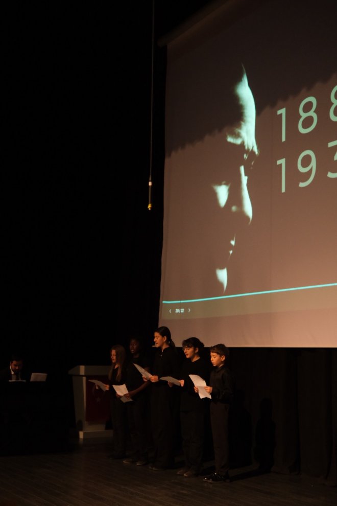 Okulun konferans salonunda gerçekleşen törende, öğrenciler Atatürk’ün ilke ve inkılaplarına olan bağlılıklarını bir kez daha dile getirdi. Saygı duruşu ve İstiklal Marşı’nın ardından başlayan programda, öğrencilerin hazırladığı şiir dinletileri, oratoryo gösterileri ve Atatürk’ün hayatını anlatan sunumlar büyük beğeni topladı.