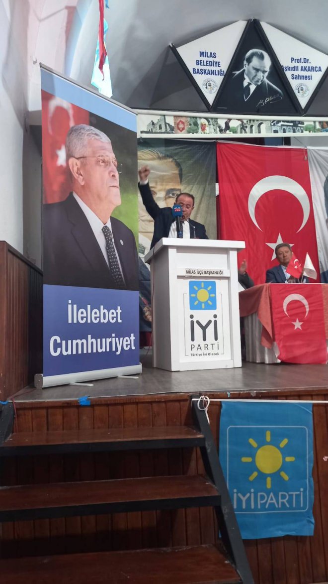 Kıymetli hazirun, Milas İlçe Başkanlığı olarak bizler; bu ahval ve şerait içinde durmadan, yorulmadan gezen, vatandaşları dinleyen, onların sorunlarına çözümler üretip kamuoyuyla paylaşan, her hafta grup toplantısında ülkemizin meselelerini dile getirerek milletimize olan sevgisini ve sorumluluğunu gösteren liderimizi örnek alıyoruz. Yegâne amacımız; milletimizin yanında olmak, vatandaşın gönlüne girmek, derdini, sevincini, kederini paylaşmaktır. İşte biz bu bilinçle, bu düsturla; halkın derdini kendine dert edinen, çözüm için elinden geleni yapan bir anlayışla çalışmalarımıza durmadan, yorulmadan ve kararlılıkla devam edeceğiz! Her geçen gün artan üyelerimizle daha da büyüyerek kocaman bir aile oluyoruz. Bu yolda birlikte gidecek çok yolumuz, çalacak çok kapımız, yapacak çok işimiz var.
