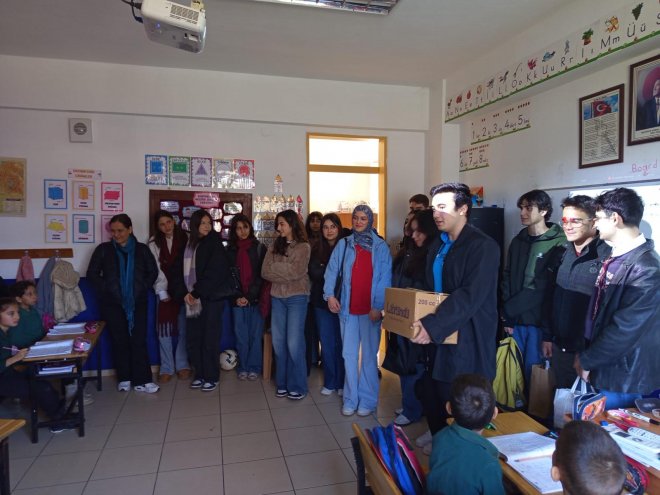 Milas Anadolu Lisesi öğrencileri, “Okulun Kalbi Kütüphaneler Projesi” kapsamında topladıkları kitapları kardeş okul olarak belirlenen Fesleğen İlkokulu’na teslim ederek anlamlı bir dayanışmaya imza attı.