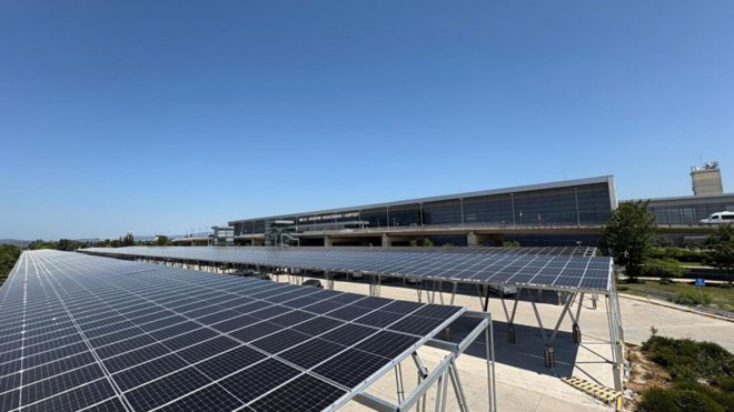 TAV Havalimanları, Milas-Bodrum Havalimanı’nda güneş enerjisi santrali (GES) yatırımını tamamladı. Toplam 6,65 MW kurulu güce sahip santralin yılda yaklaşık 10 milyon kWh elektrik üretmesi öngörülüyor. Bu üretim, yaklaşık 3 bin hanenin yıllık enerji tüketimine denk geliyor.