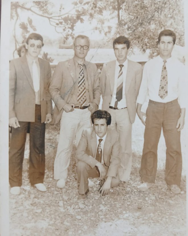 Fotoğraf: Milas Lisesi bahçesi 1983 yılı Felsefe öğretmenimiz Halil Enkur.