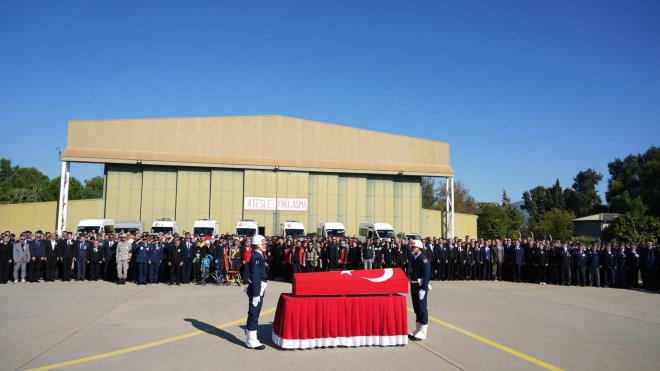 Askeri uçakla Milas Hava Meydan ve Garnizon Komutanlığı'na getirilen şehit Kuran'ın naaşı, protokol üyelerince karşılandı.