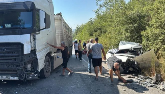 Edinilen bilgilere göre, Ören istikametine seyir halinde olan iki TIR’dan biri, sollama yapmak isterken Milas yönüne ilerleyen otomobil ile kafa kafaya çarpıştı. Çarpışmanın şiddetiyle otomobil hurdaya dönerken, araçtaki 2 kişi yaralandı.