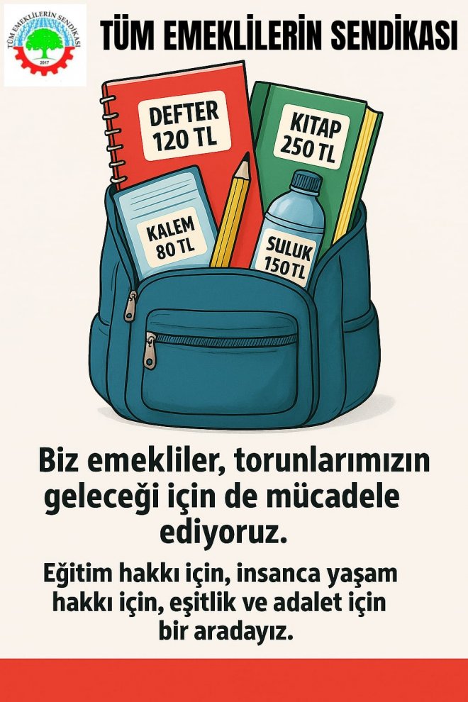 “Bugün bir okul çantasını doldurmak bile emekçiler için büyük bir yük haline gelmiştir. Defter, kitap, kalem ve kırtasiye malzemeleri artık lüks sayılmaktadır. Çocuklarımızın sırtındaki çanta, geleceğimizin yükünü taşımaktadır.