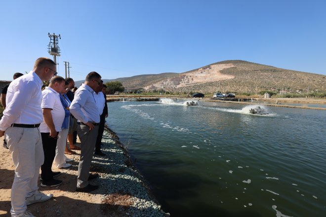 Senatör Balıkçılık tesislerinde yılda 145 ton deniz balığı yetiştiriciliği, Sürsan Su Ürünleri’nde ise deniz balıkları kuluçkahanesinde yılda 100 milyon yavru balık yetiştirme süreçleri incelendi. Valimiz, Milas Su Ürünleri Üreticileri Birliği Başkanı Muhammet Toğuç’tan toprak havuzlarda deniz balığı yetiştirme süreci hakkında bilgi aldı.