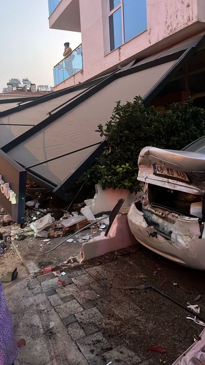 ​Edinilen bilgilere göre; i​​​​​İhbarın 06.08’de yapıldığı kazada, direksiyon hakimiyetini kaybeden sürücünün aracı önce park halindeki bir kamyonete çarptı. Çarpmanın şiddetiyle savrulan otomobil, çevredeki başka bir araca da zarar vererek bir apartmanın zemin katındaki dükkana ait sundurmaya girdi. Kazanın etkisiyle apartman duvarı yıkılırken, iş yerinin tabelaları devrildi ve çevredeki eşyalar etrafa saçıldı.