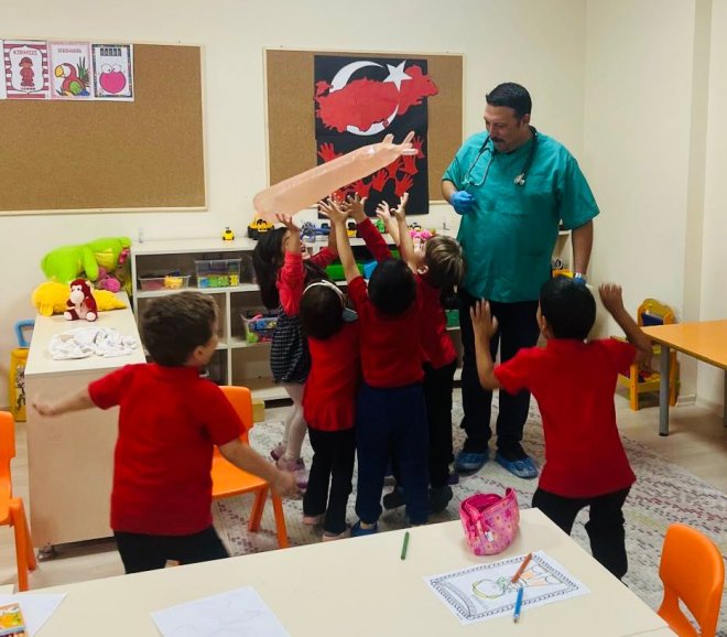 Etkinlikte çocuklara, hayvanların da insanlar gibi yaşam hakkına sahip olduğu, onları korumanın bir sorumluluk olduğu vurgulandı. Veteriner hekimler, miniklerin sorularını yanıtlayarak hayvan dostu bir toplum için farkındalık oluşturdu.